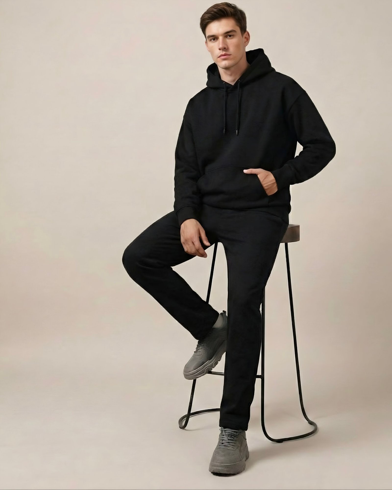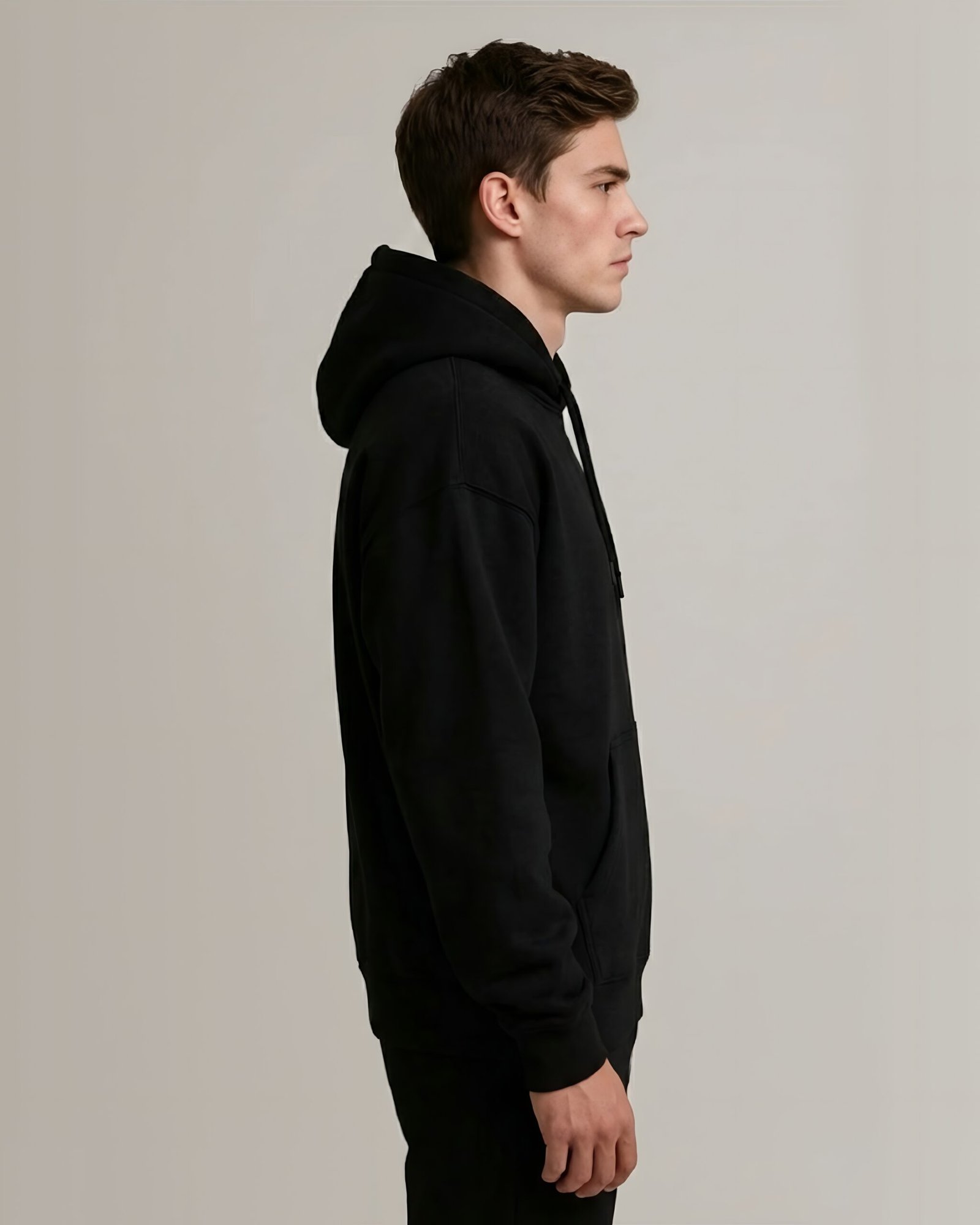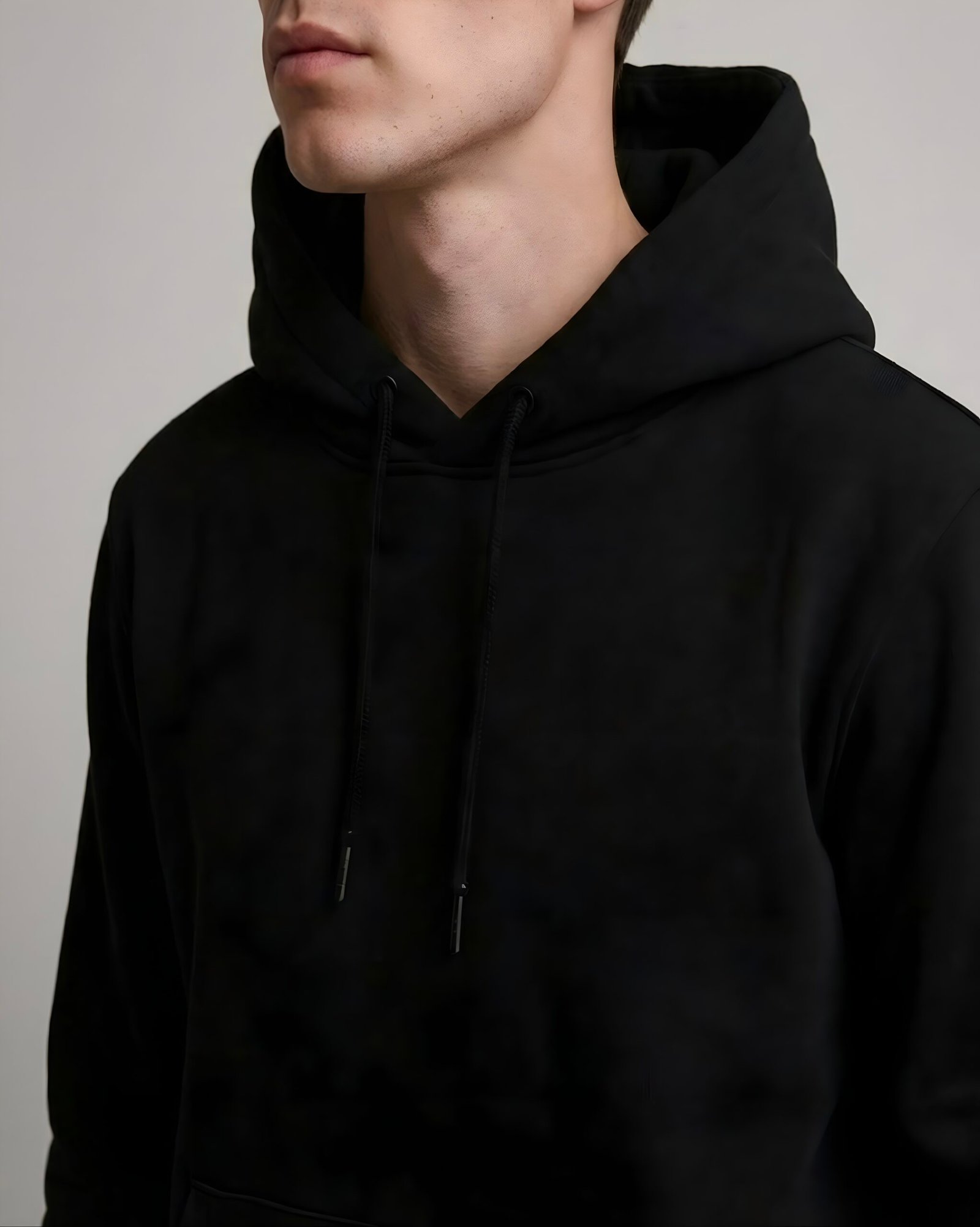 Men’s solid black hoodie made from premium soft fabric, designed for everyday comfort and modern style. Features a relaxed regular fit, adjustable hood with drawstrings, and a front kangaroo pocket, making it perfect for casual wear, winter layering, travel, and daily use.